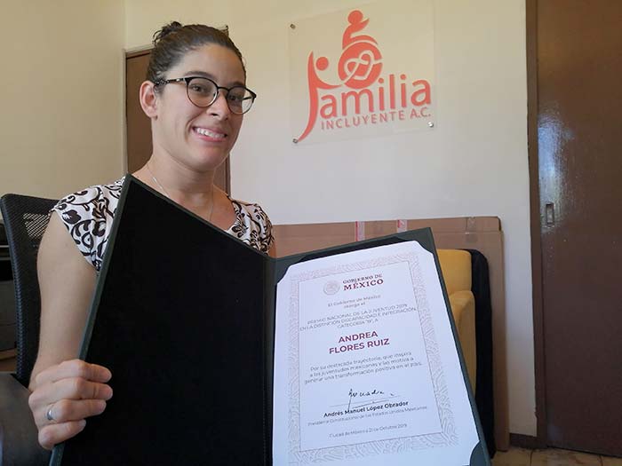 La tercera ocasión pensó que lograría acercarse al presidente cuando la reconocieron con el Premio Nacional de Juventud 2019 por su trabajo dedicado a la inclusión de las personas con discapacidad. Ella fundó la organización Familia Incluyente que da soporte y apoyo a las familias con integrantes que tienen discapacidad.