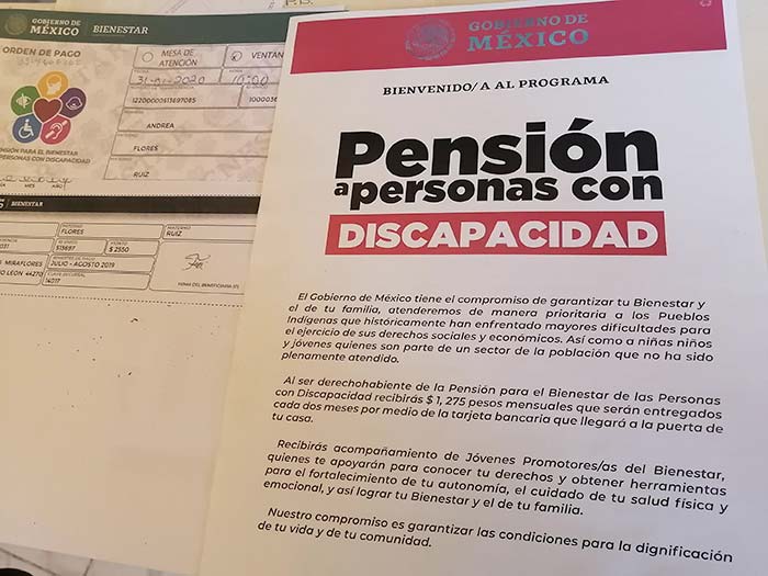 Andrea tiene una mirada crítica al Programa Pensión para el Bienestar de las Personas con Discapacidad. Como otros expertos y activistas que encuentran deficiencias en la política pública, se pregunta cómo está funcionado el programa. Ella vive en Guadalajara, por su trabajo y activismo como persona con discapacidad está relacionada con más personas de este colectivo