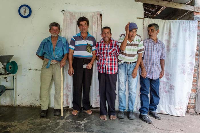 Francia, de 38 años, una de las más jóvenes, es el principal sostén de la familia. Ella trae a casa 28,000 pesos colombianos cada día cosechando papayas en los campos a las afueras del pueblo. «Realmente, lo que gano es solo lo suficiente para comer y nada más», dice ella. Cuatro de sus hermanos tienen el síndrome X frágil, una condición genética que causa discapacidad intelectual, anomalías físicas y, a menudo, autismo. Jair, de 57 años, trabaja junto a Francia cuando puede. Héctor, de 45 años, también es más o menos capaz de cuidarse a sí mismo. Pero Victor, de 55 años, y Joanna, de 35, quien tiene simultáneamente el síndrome X frágil y síndrome de Down, son menos independientes.