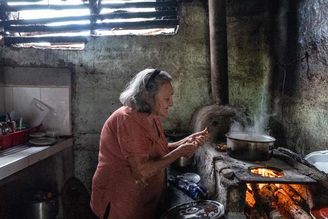 Cae el atardecer sobre Ricaurte, un pequeño pueblo del Valle del Cauca perdido entre las montañas, cuando Mercedes Triviño, de 82 años, enciende la estufa de leña para comenzar a preparar la cena. El humo llena la casa de dos habitaciones que comparte con seis de sus hijos adultos.
